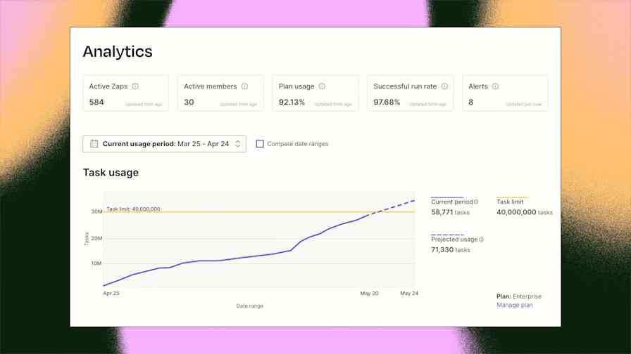 Automate and manage business processes in one spot. You can easily access your Zaps from the Interfaces builder or your Zap dashboard. If something goes wrong, you'll know—and can fix it right away.